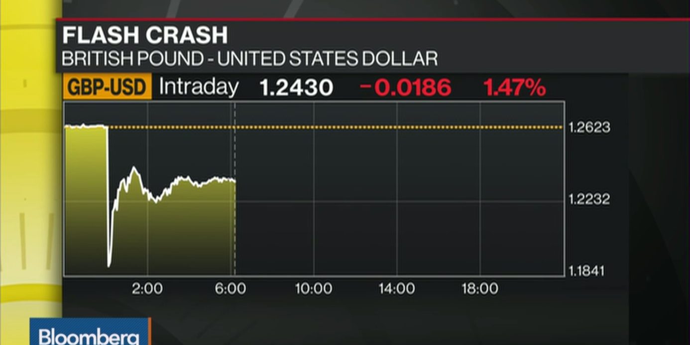 La devise anglaise a chuté de plus de 6 % en deux minutes en Asie avant de rebondir à 1,2465 dollar.